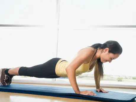 Here's an example of a body-weight circuit workout, one you can do anywhere. Do 10 repetitions of these exercises, move on to the next, and do the circuit three times: