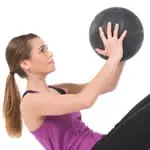 I like to use a 40-pound dumbbell or a medicine ball when I do these. The added weight makes it more difficult and really works your core. Hold the ball or weight out and follow it with your head rotating your entire torso. Remember to breath and execute slowly. Try to get two sets of 20 reps. If you can, try performing these on an incline bench for a more advanced workout.
