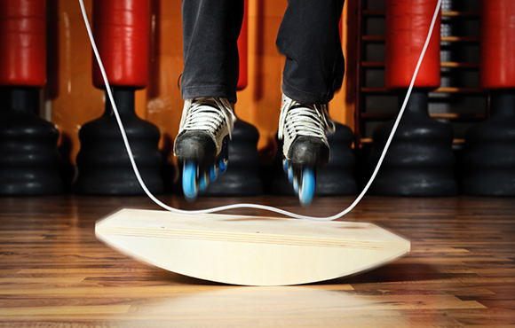 If this is real, it's easily the most impressive picture. Standing on a balance board with roller blades would be incredibly hard. Add jumping rope to the equation, and that's some serious talent.