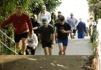 - Sprint up the stairs as fast as possible without using the rail.
