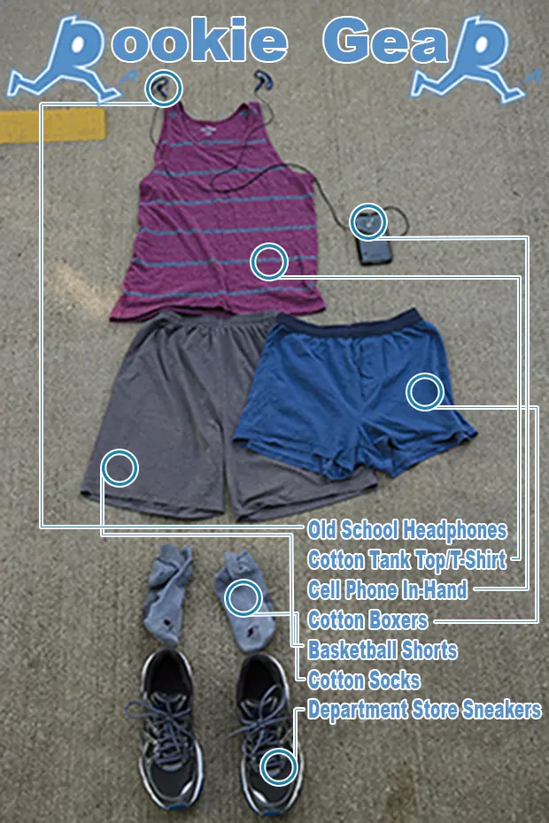 Little did I know I had been committing running blasphemy throughout my entire 5K training. Apparently, running in cotton is a no-no (I typically run in a shirt, socks and boxers all made of 100-percent cotton). Apparently, running in basketball shorts is a major faux pas. Apparently, you're not supposed to hold your cell phone while you run. And apparently, running in $35 "running" shoes you got on clearance from a department store will destroy your entire lower body.